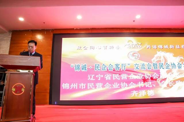 1月28日,由锦州市委社会工作部、市发改委主办,市各委办局等相关部门协办,辽宁省民营企业协会锦州办事处、锦州市民营企业协会承办的“锦诚.民企会客厅”暨市民营企业协会年会在石油宾馆圆满召开。本次会议以“政企联动赋能发展,同心聚力共谱新篇”为核心,汇聚市委社会工作部、发改委、工信局、财政局、税务局及市县区各委办局代表、辽宁省民营企业协会及各市办事处主任、品牌中国战略规划院专家委员郑策文、辽宁省辽商发展促进会及各市分会会长、中国国际救援中心北方总部领导、丹青集团、锦州市民营企业协会班子成员和会员企业、锦州市部分民营企业代表负责人参加;搭建政策解读、经验交流、资源对接的优质平台,为锦州民营经济高质量发展注入强劲动力。