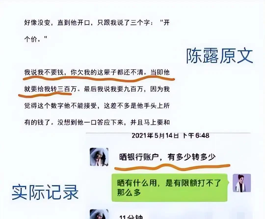 而分手8个月之后,陈露和其闺蜜直接索要900万分手费,表示不给就曝光其私人聊天记录。