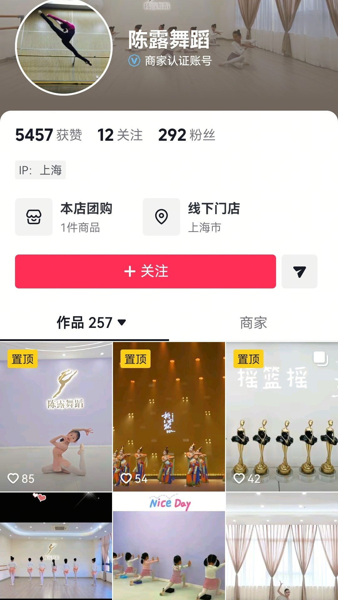 工作室粉丝虽然不多,但是看发的短视频,基本都是孩子在陈露舞蹈学习舞蹈的视频。