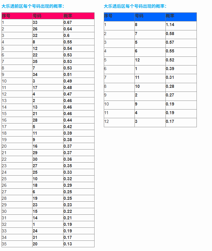 概率数据如下: