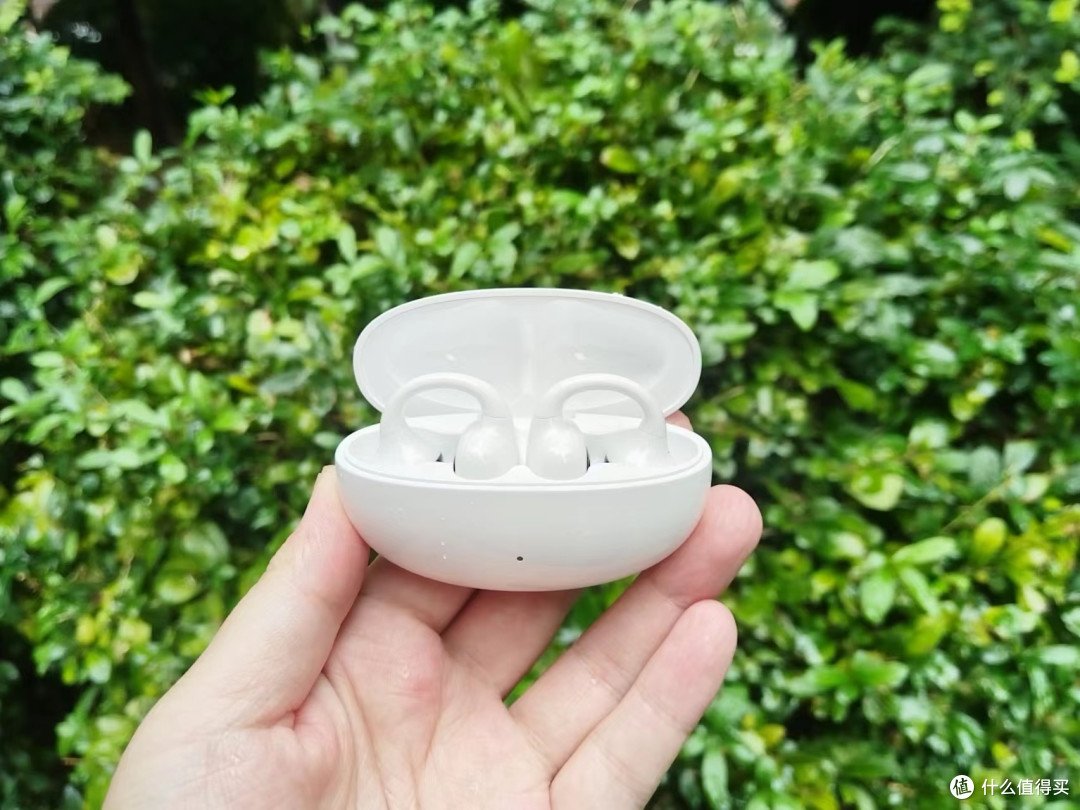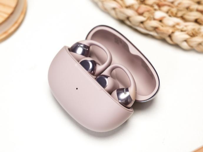 佩戴方面:这款耳机通过前后高低2.5mm的错位设计,能更贴合耳朵自然轮廓,佩戴时不易松动。电池仓搭配12°弧面耳托,紧密贴合耳背,既能稳固佩戴,又能均匀分散压力。单耳仅4.5g的轻量化机身,让长时间佩戴也没有夹耳感,几乎感受不到它的存在。