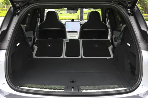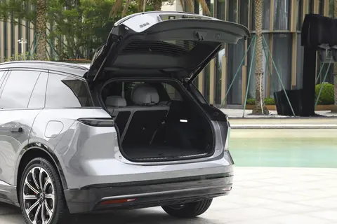 动力系统延续前后双电机四驱布局,综合功率360kW(490马力),峰值扭矩700N·m。新增的9种驾驶模式中,“后排尊享模式”颇具巧思:开启后减震阻尼调节至超软设定,动力输出更为平顺。笔者在高速巡航时开启该模式,后排乘客反馈颠簸感明显减弱,车身过大起伏路面时的摇晃减少约三分之一。
