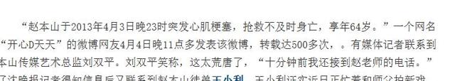 其实早在2013年的时候网上就已经流传过赵本山离世的消息。