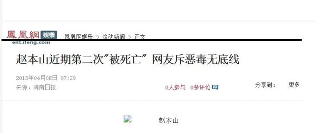 凤凰网(赵本山近期第二次"被死亡" 网友斥恶毒无底线 2013.04.08)