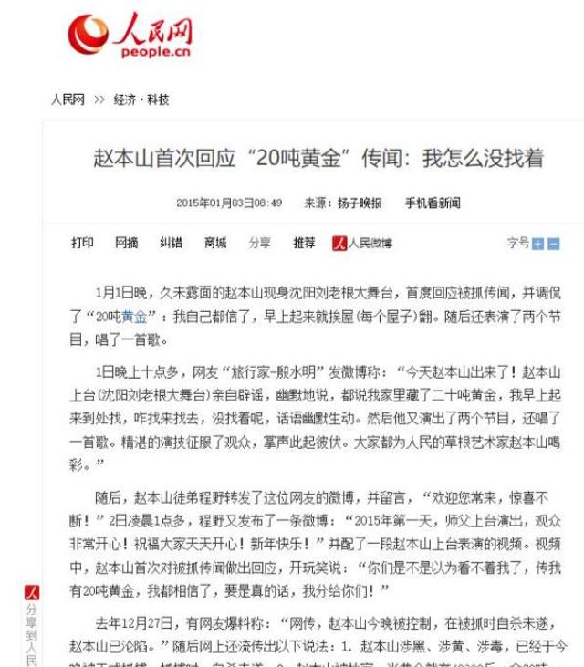 甚至还有一些网友直接将赵本山被封杀的消息和之前家里藏有很多黄金的传言进行了联系。