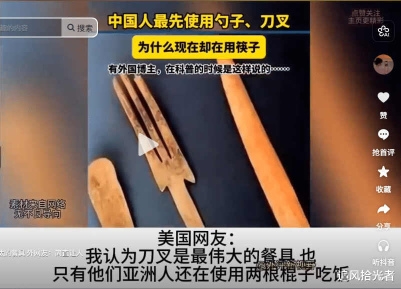 早期中国也曾流行“分餐制”,每个人一份食物,用刀叉分割取食很自然。但后来,尤其是在唐宋之后,“合餐制”(大家围坐在一起共享菜肴)逐渐成为主流。在这种情况下,用筷子从公共的盘子里夹菜,显然比每个人都用刀子去割更加卫生和文明。他们普遍认为刀叉是西方文明的标志,而筷子是东方(尤其是中国)的象征。得知中国祖先也曾使用过类似的工具,并且因为“更先进”的饮食方式(使用筷子)而放弃了它,这种认知上的反差会让他们感到非常惊讶。