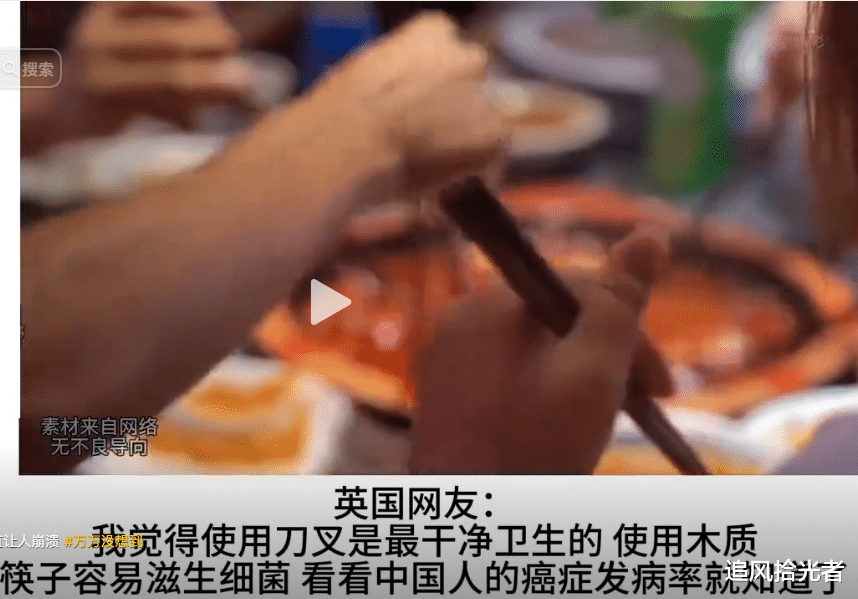 英国网友:我觉得使用刀又是最干净卫生的 使用木质筷子容易滋生细菌 看看中国人的癌症发病率就知道了