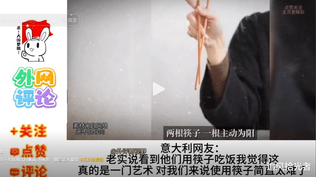 意大利网友:老实说看到他们用筷子吃饭我觉得这真的是一门艺术 对我们来说使用筷子简直太难了