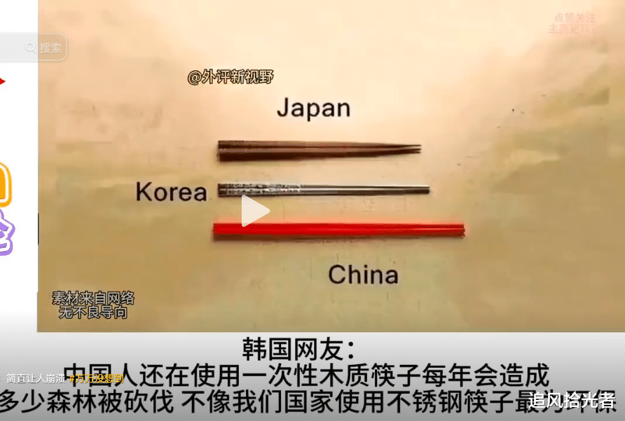 韩国网友:中国人还在使用一次性木质筷子每年会造成多少森林被砍伐 不像我们国家使用不锈钢筷子最为环保