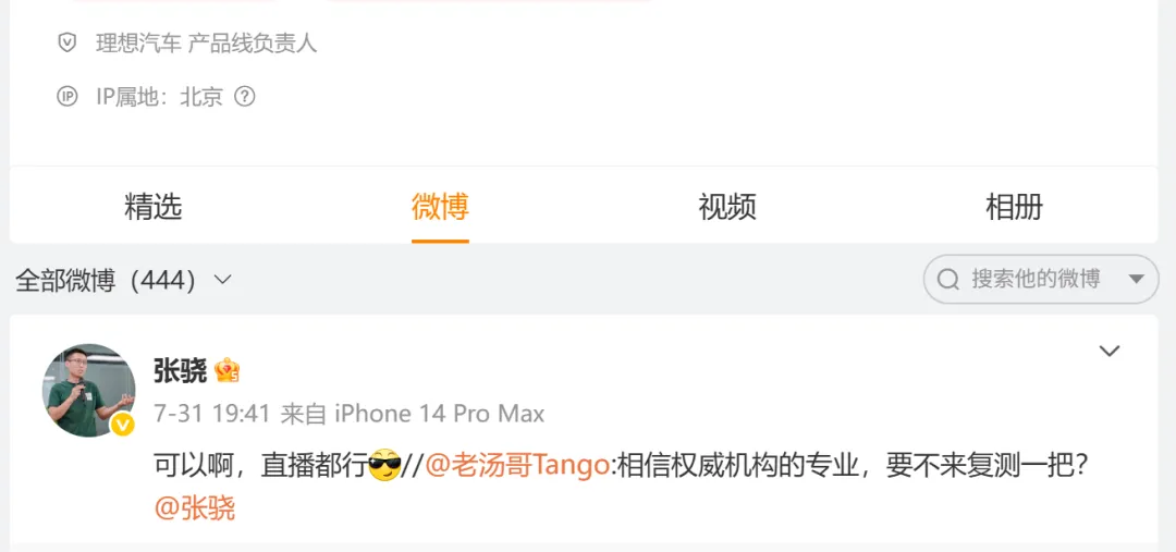两位理想汽车产品线负责人还在微博上互动,表示可以复测,甚至直播都行。