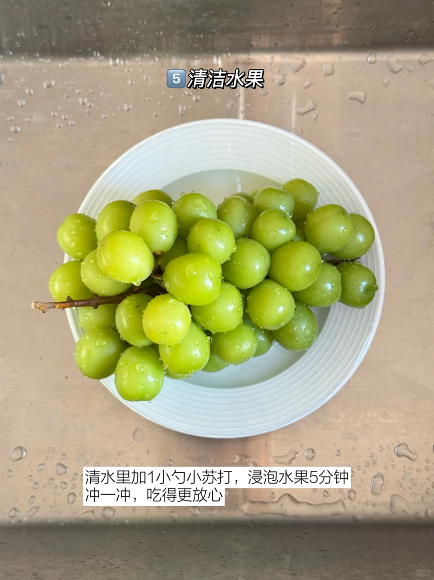 除此以外,小苏打还是很好的水果清洁剂,平时买回来的葡萄或者是其他的一些水果,都可以使用小苏打浸泡清洗。