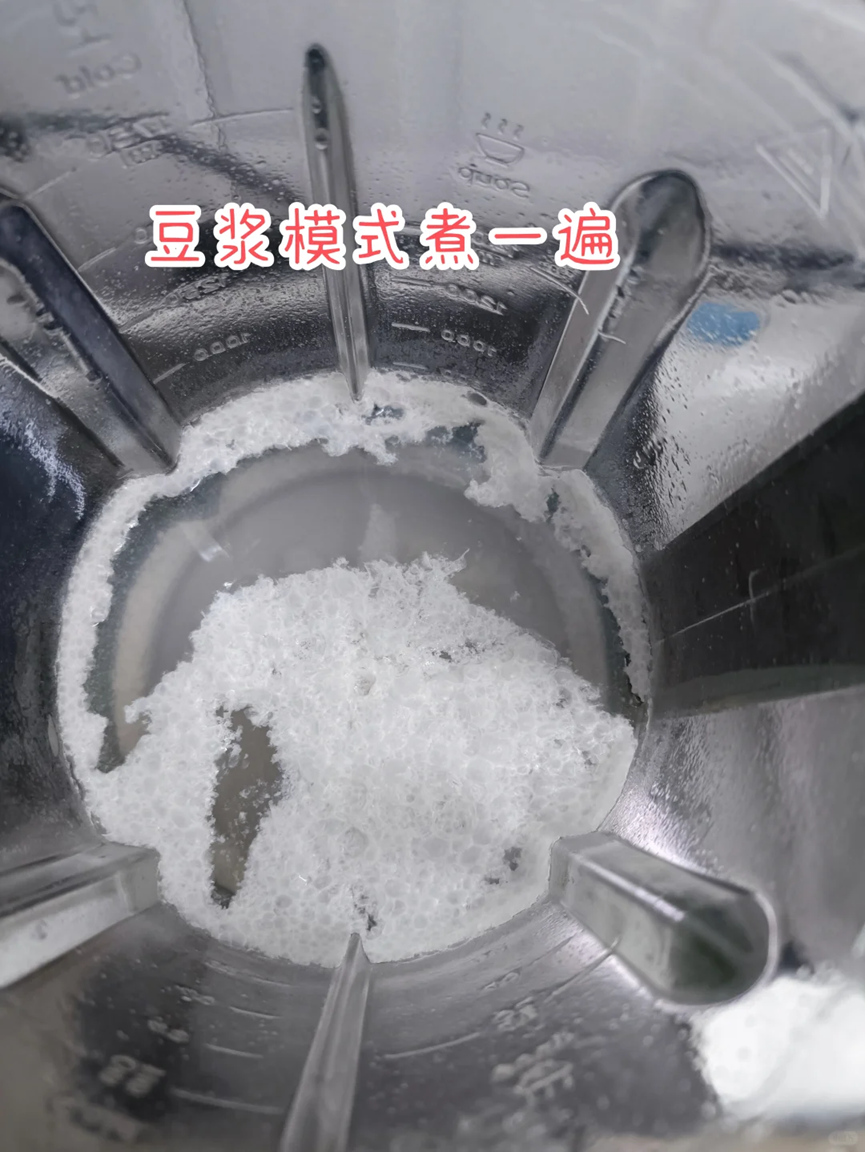 如果家里面的破壁机功率比较低的话,就不需要加鸡蛋壳了,准备好之后,选择豆浆模式,煮一遍,就能够使破壁机干净如新了。
