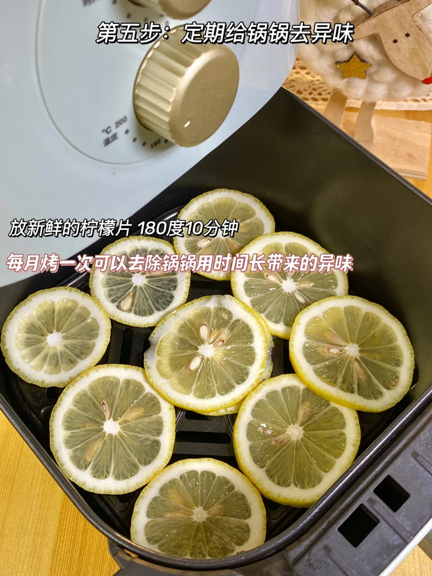 清理干净之后,大家可以在空气炸锅里面放上几片新鲜的柠檬片,