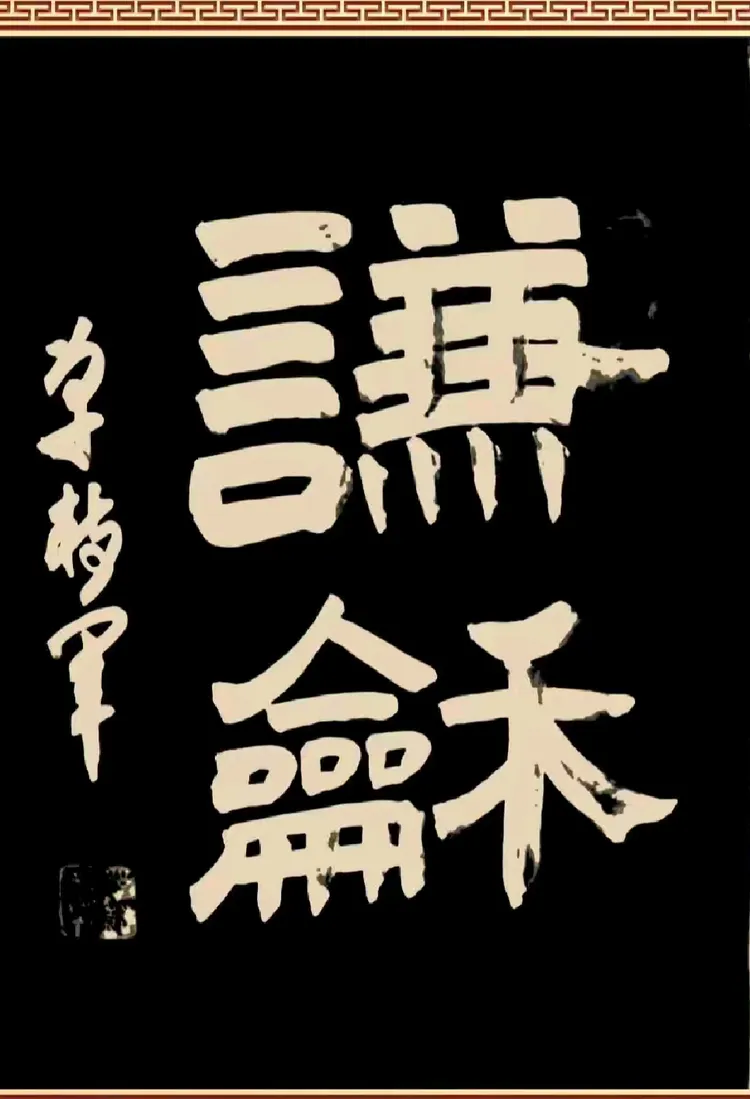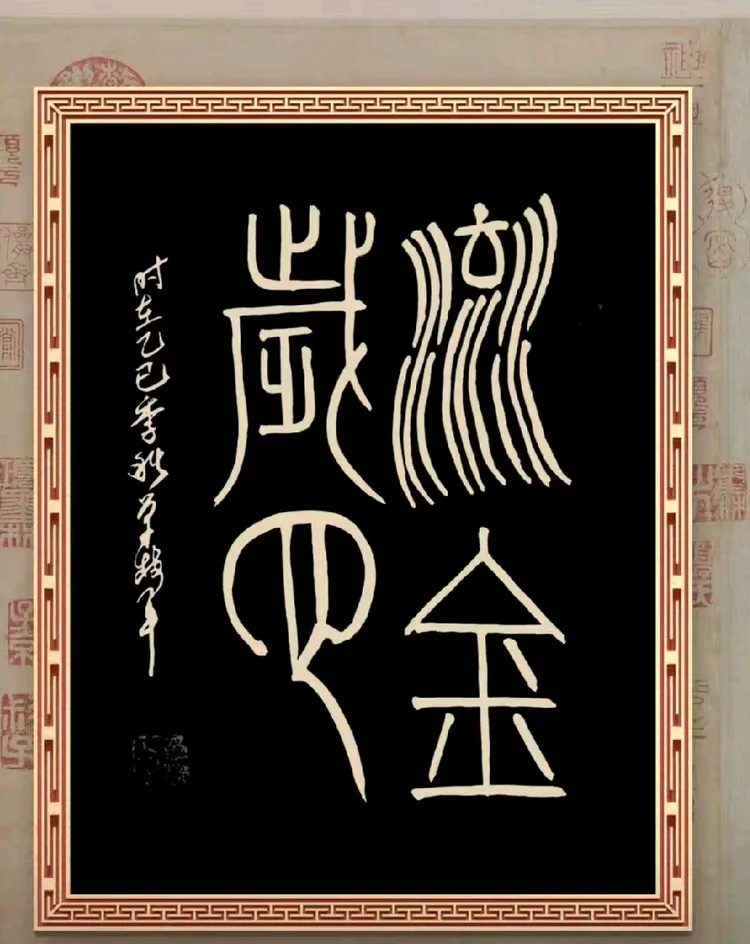 “流金岁月”四字篆书,金边黑底,庄重如史册翻开。那粗犷有力的笔画,仿佛刻在青铜器上,历经风雨仍熠熠生辉。这是对时光的敬意,也是对艺术生命的礼赞。单树军先生五十余载笔耕不辍,正是在这“流金岁月”中,将平凡的日子写成了不朽的篇章。新年伊始,回望来路,每一道墨痕,都是岁月的勋章。