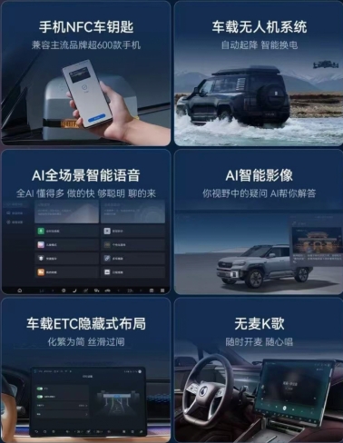 比亚迪倾力打造全球首创的灵鸢-比亚迪智能车载无人机系统;灵鸢快充版搭载于比亚迪、方程豹、腾势品牌,配备大疆Air 3S 定制车载版无人机,是行业首款与大疆联合定制的无人机,该系统采用软硬一体的系统化设计,继承了消费级飞机的高分辨率视频流和极致的避障算法系统,通过车载定制,实现多项核心功能。灵鸢换电版搭载于仰望品牌,配备 大疆 Mavic 3 pro无人机,可实现自动换电,无缝续航。