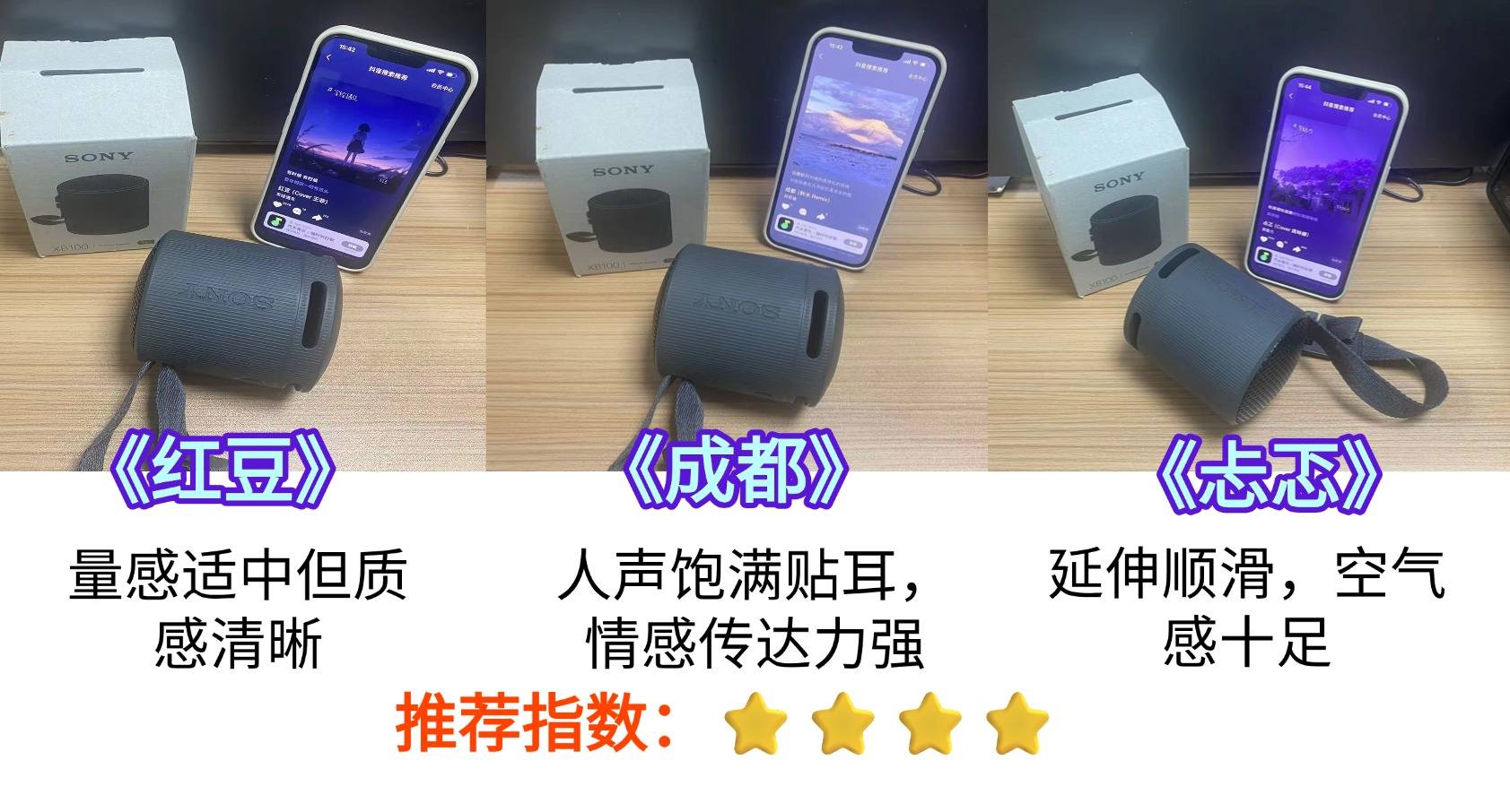 2. 中频测试:选取真人声清唱及流行民谣《成都》,重点考察人声的贴耳度与感情色彩。