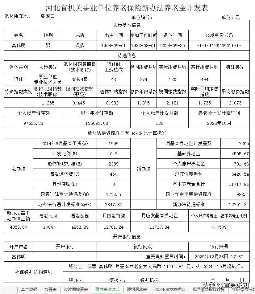 今天,我来试着解读高先生计发表中养老金12701.24元的每一个相关数据,请读者朋友们批评指正。