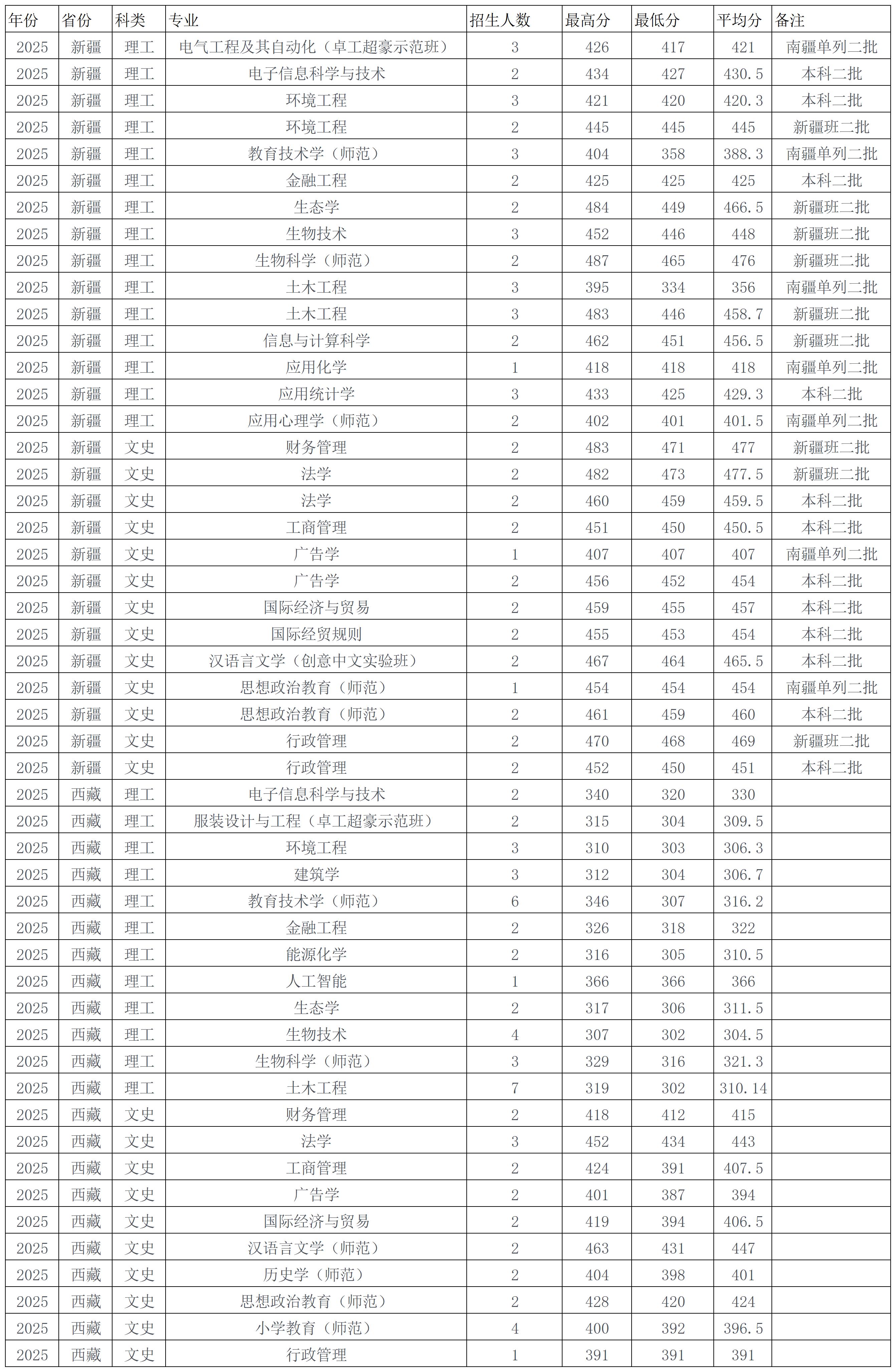温州大学2025年在新疆、西藏各专业 录取分数线