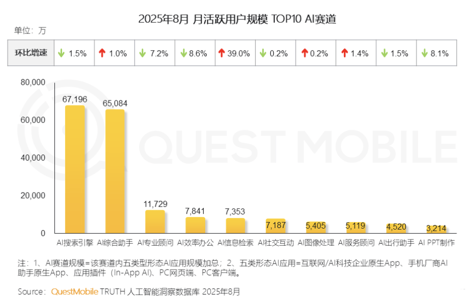 数据显示,手机AI应用的月活跃用户已高达6.45亿,其中既有互联网的原生AI App,也有手机自带的AI助手、应用插件等产品;而在汽车领域,今年的“智驾平权”浪潮让10万元级别的车型也开始普及L2级以上的智能驾驶。