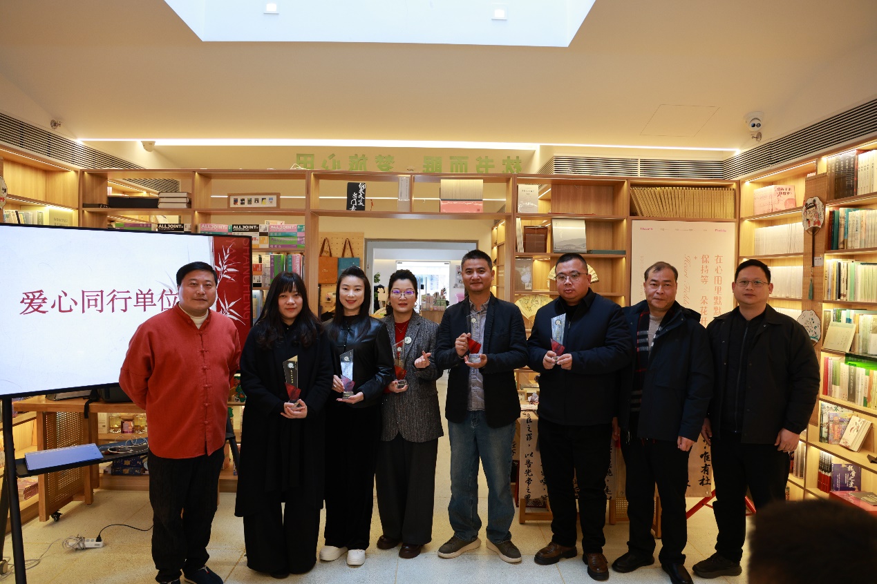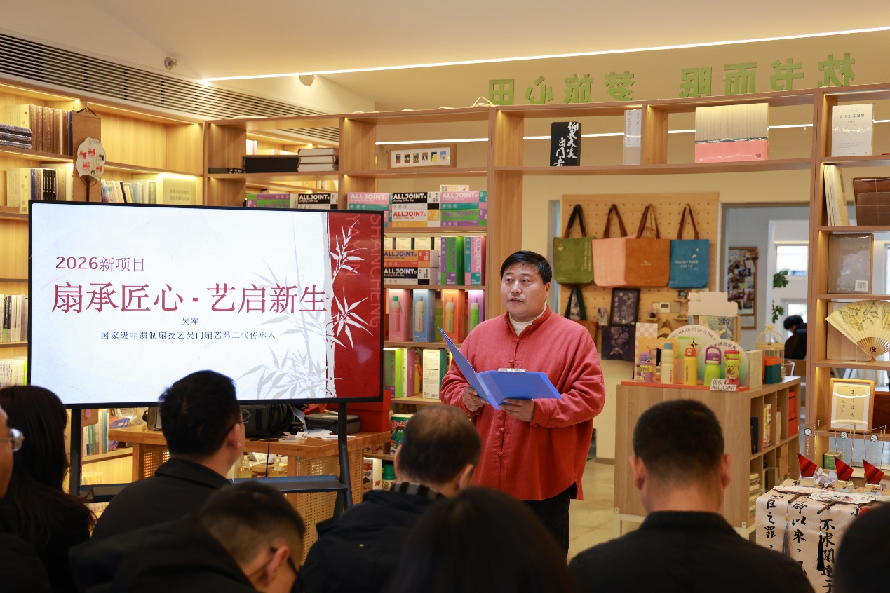 横泾街道办事处副主任席月心代表街道肯定了项目的社会价值,鼓励团队继续以匠心筑梦、以爱心赋能。现场还举行了2026“扇承匠心 艺启新生——苏扇技艺助残就业赋能计划”启动仪式,项目主管吴军先生的详细汇报,让大家对新一年项目助力残障学员就业增收充满期待。爱心同行单位证书颁发环节,王玉专副科长、席月心副主任、吴门扇艺第二代传承人吴军为苏州市姑苏区特殊教育学校等五家单位颁奖,一份份证书承载着对爱心担当的认可,更凝聚着携手前行的约定。