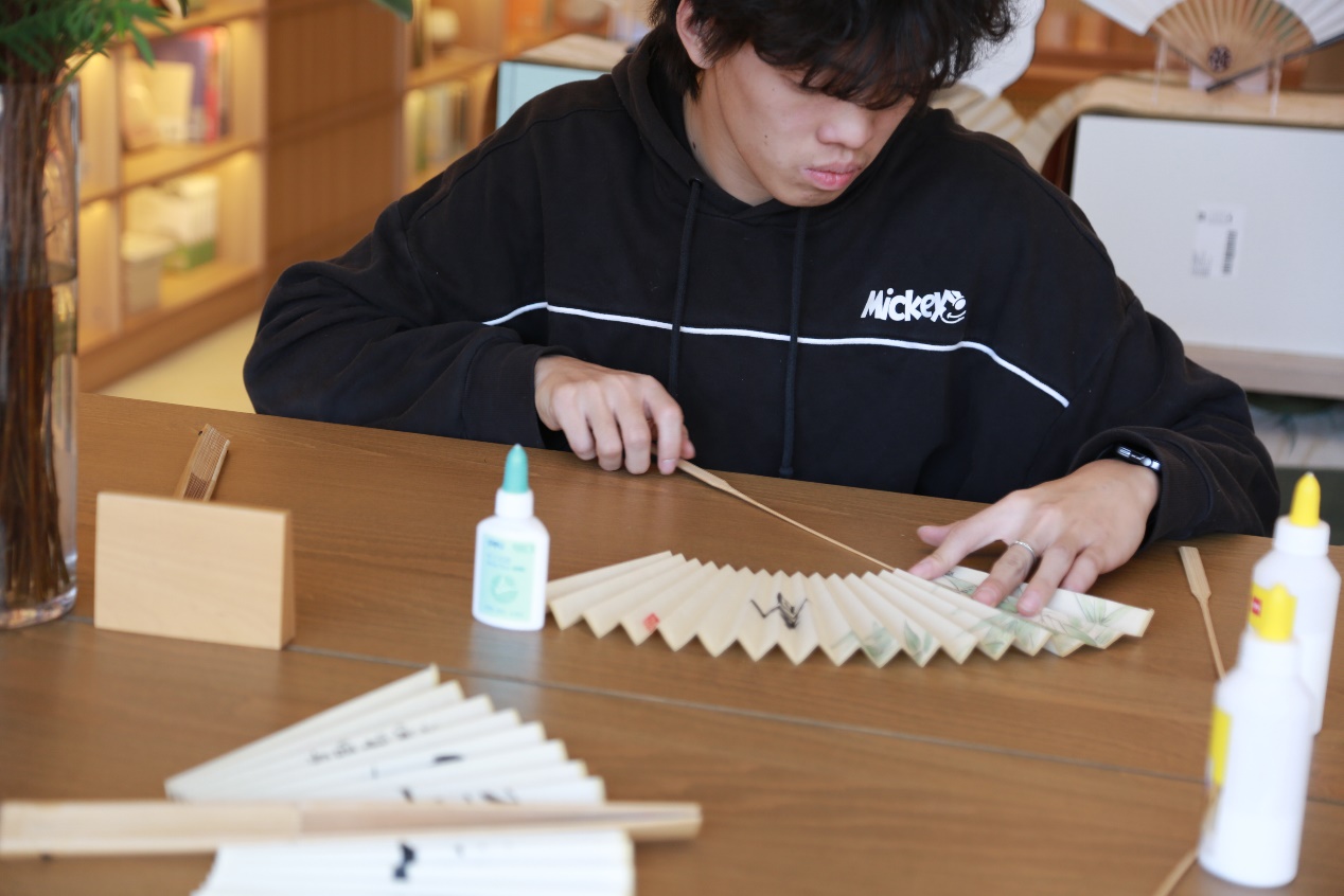 1月3日的“制扇技艺体验”则由吴门扇艺第三代传承人、本次助残项目执教老师顾梓言主讲。顾老师带着大家走进苏扇制作的奇妙世界,从扇骨选材、打磨到扇面固定、修整,一步步拆解制扇流程,亲手示范每一个关键步骤。参与者们兴致盎然地动手操作,在顾老师的悉心指导下,慢慢掌握制扇技巧。当看到自己亲手制作的扇子逐渐成型,大家脸上都洋溢着成就感。此次体验不仅让参与者近距离感受了国家级非遗制扇技艺的匠心精髓,更让大家对残障学员们在项目中付出的努力有了更深刻的理解——每一件扇作的背后,都是日复一日的坚持与热爱。