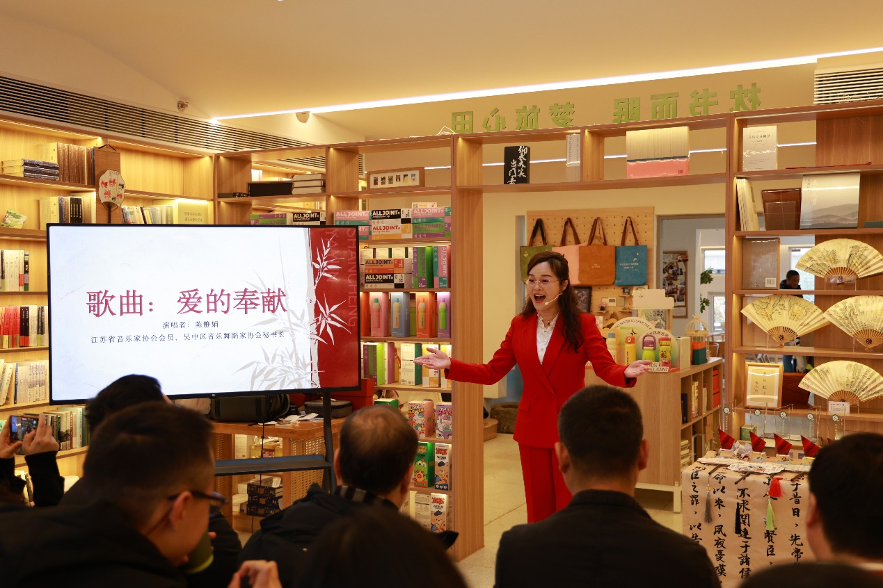 元旦启幕聚温情 雅扇为桥绘初心开幕式现场暖意融融,苏州市残疾人就业管理服务中心培训科副科长王玉专、横泾街道办事处副主任席月心、苏州市姑苏区特殊教育学校校长刘嫣静等嘉宾悉数莅临,与爱心企业家、公益人士、项目师生代表齐聚一堂,共赴这场温暖之约。活动伊始,江苏省音乐家协会会员、吴中区音乐舞蹈家协会秘书长陈静娟女士带来歌曲《爱的奉献》,悠扬旋律勾勒出助残事业的温情轮廓,也拉开了开幕式的序幕。