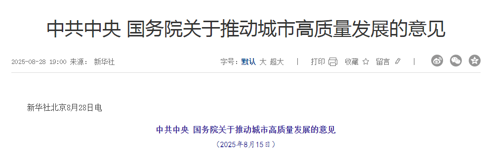 这份重磅文件明确了加快城市发展方式转型和推动城市高质量发展的总体要求、主要目标和重点任务。