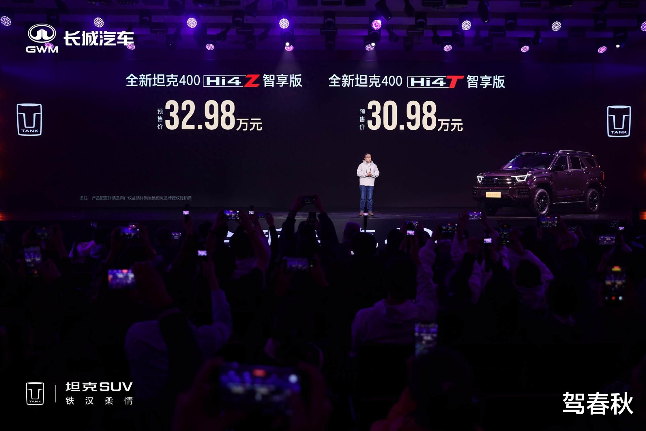 10月21日,坦克400又推出了新款。其中全新坦克400 Hi4-T智享版预售价30.98万,全新坦克400 Hi4-Z智享版预售价32.98万。