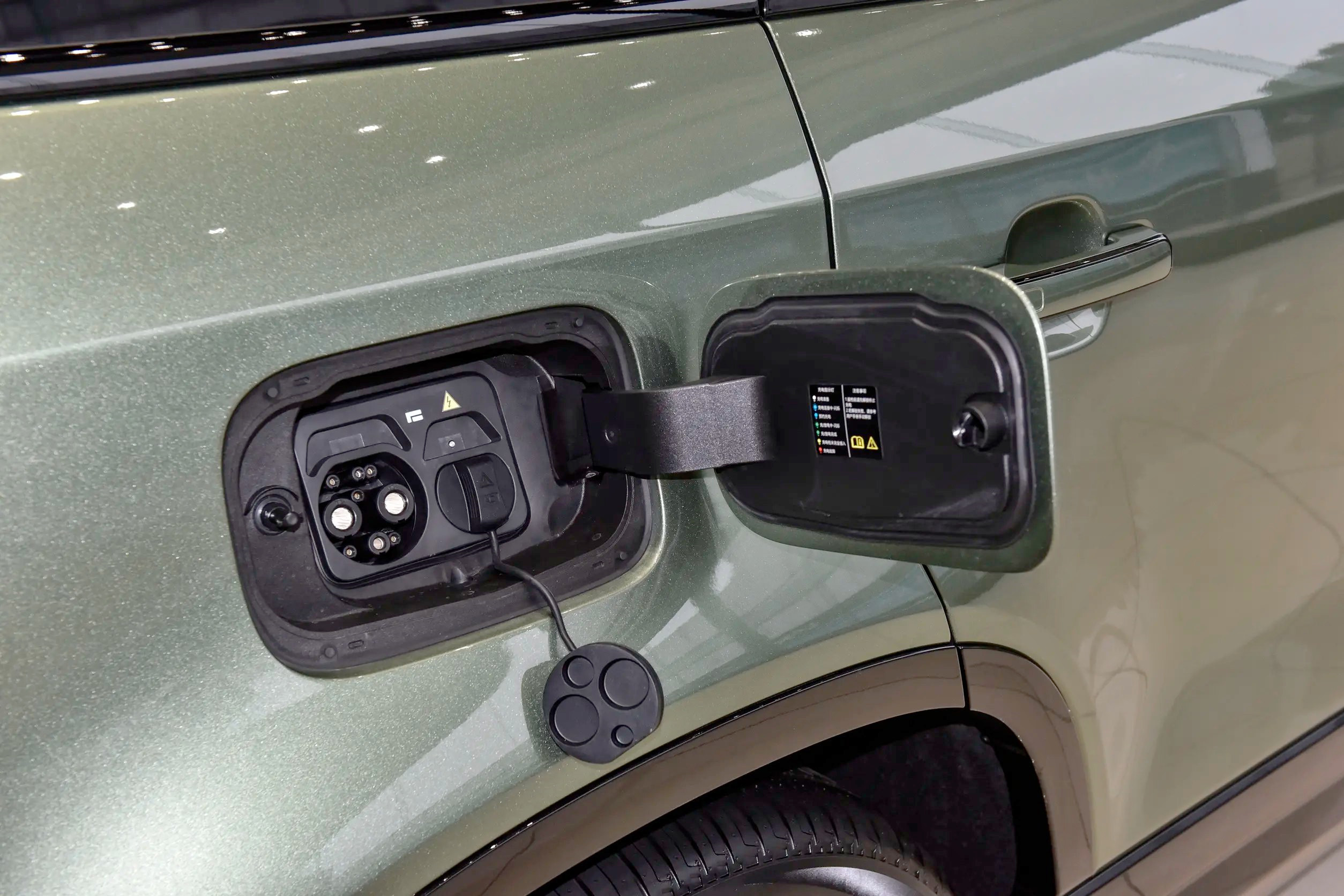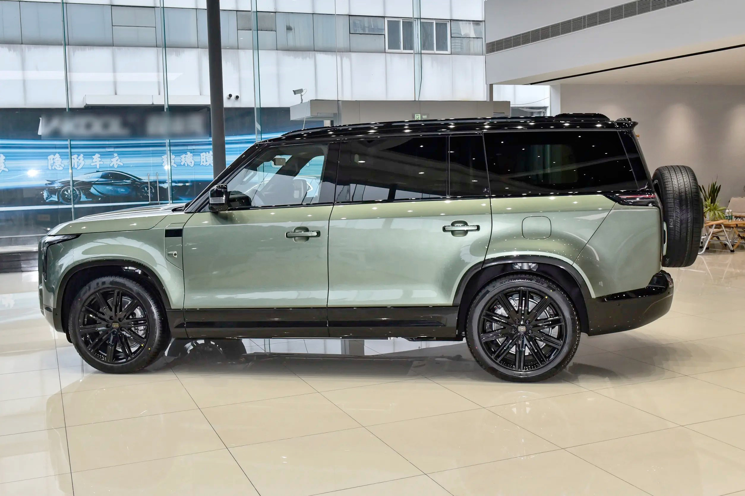 细节设计:大尺寸网状中网+宽大的前包围组件(提升前脸气势)、L型前大灯组(造型锐利)、方盒子车身造型+平直的车身线条(既保证了前后排头部空间,也为车顶行李架、露营帐篷等户外装备提供了规整的安装基础)、外凸式轮拱+侧裙防刮条(进一步强化硬派属性)、竖向排列LED尾灯(与前大灯形相呼应)、四门电吸门+电吸侧开式尾门。