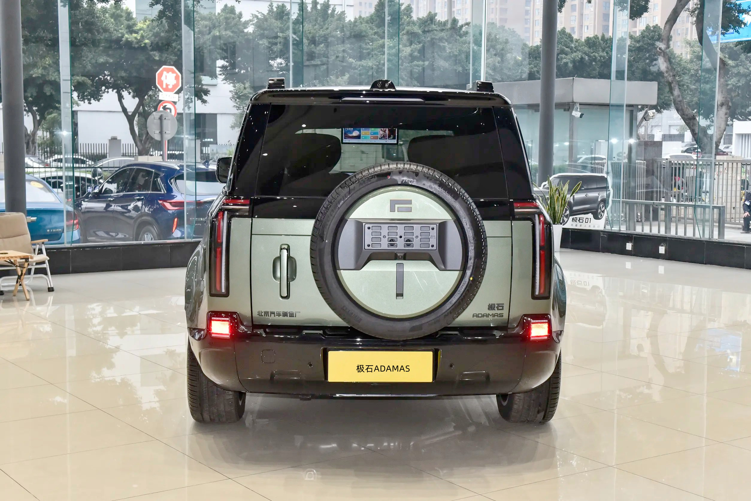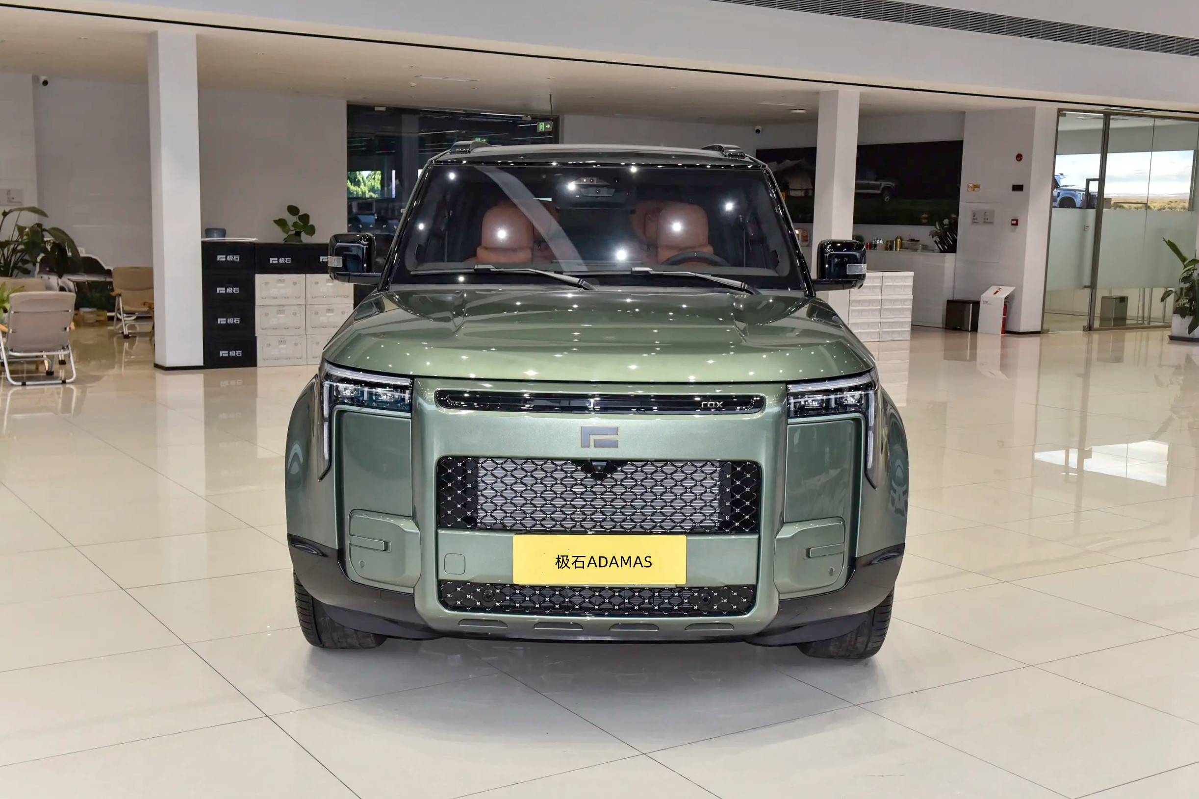 外观设计部分,极石ADAMAS延续了“极石01”的外观设计方案(硬派方盒子造型),区别在于细节部位进行了调整,整体设计还是遵循了“功能为主”的逻辑,车身轮廓以平直线条为主,仅在引擎盖边缘、车窗转角处做轻微圆角过渡,既强化了硬派气场,又能减少越野时的剐蹭风险。