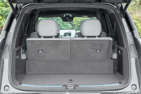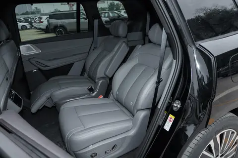 领克900的车身长宽高分别为5240x1999x1800mm,轴距为3160mm,整车座椅采用的是Nappa真皮材质,三排座椅均支持电动调节功能,前后排座椅还带有加热、通风以及按摩功能,值得一提的是,这台车的第三排座椅也同样带有加热和按摩功能,可以说将舒适性功能做到了全车平权的表现,一般这种尺寸的车型第二排空间是完全够用的,同样以身高175cm的成年人为例,将第二排座椅调整至还有1拳半的富余进入第三排后,腿部空间还有1拳出头的余量,加上座椅采用了垫高的处理,整体的坐姿比较舒适,能够保障长时间乘坐的舒适性。行李舱的日常容积为300L,将后排座椅放倒后可以扩展至1070L,装载能力和腾势N8L DM保持在同一个水平。