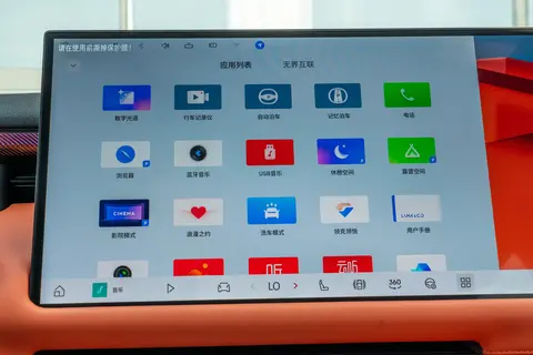 领克900的内饰采用的是T字型的设计布局,赤霞橘的内饰配色增添了一定的活力感,中控台上的30英寸大屏幕具有较强的视觉冲击力,分辨率高达6K,显示画面清晰细腻,配备的是LYNK Flyme Auto车载智能系统,并内置了高通骁龙8295车载智能芯片,以确保屏幕的操作流畅度和响应速度,智能化表现基本上和腾势N8L DM保持在同一个水平,并且还要多出了CarPlay、Flyme Link、声纹识别以及手势控制功能。两幅式的多功能方向盘造型大小适中,采用真皮的材质,支持四向电动调节,并带有记忆和加热功能,仪表盘采用的是一块12.66英寸的横向窄屏幕,虽然看上去不太方便,但是还带有抬头显示系统(HUD),可以将常用的行车信息投射到前挡风玻璃上,便于驾驶员查看,换挡形式采用的是电子式怀挡,并在前排中央扶手处配备了手机无线充电功能以及2个USB/Type-C的多媒体接口,能够保障多个电子设备的充电需求。