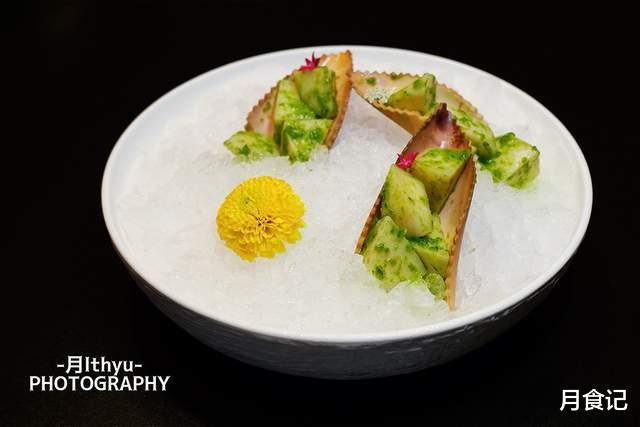 前菜:冰镇马踏湖莲藕,荷花与莲藕的搭配,颜值爆棚,很夏天的感觉;意境蘑菇鹅肝:伪装成小蘑菇的鹅肝慕斯,入口即化;黑金阿胶土猪脚:软糯可口;油醋汁金丝皇菊:重在调味,很特别的口感! 椒麻甜龙笋:很嫩很脆,超爱!
