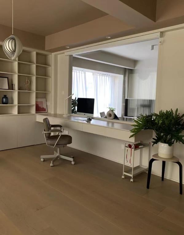 这种开放式的设计虽然减少了墙体的阻隔,但通过玻璃隔断仍然能够保证足够的私密性, 这种设计使得书房与客厅之间形成了一种独特的隔断,同时又不影响整体的通透感。