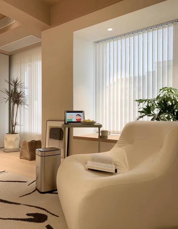 在这里,奶油色的乳胶漆将整个墙面进行了涂刷,传达出了一种温暖的氛围,这种柔和的色调让人感到舒适,营造了一种温馨的家居环境, 同时,这种色调也给空间带来了宽敞感,使整个客厅显得更加开阔。