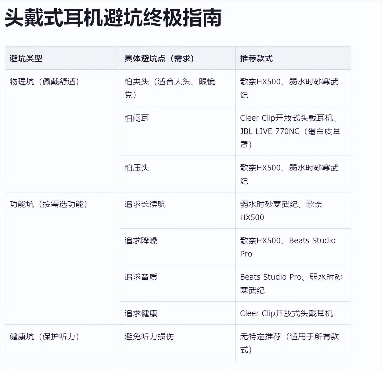头戴式耳机避坑指南头戴式避坑核心准则头戴式最容易踩的坑就是“夹头压耳”,选的时候一定要注意。