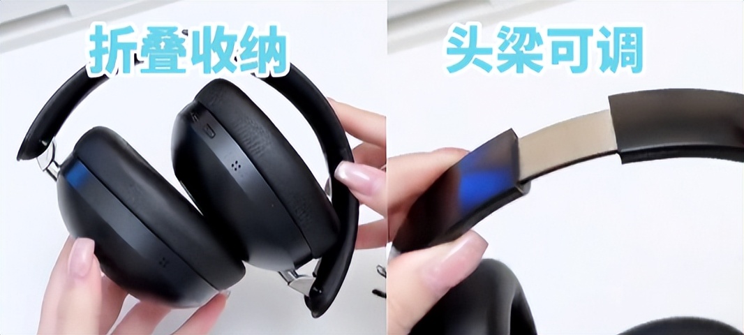 航空级铝合金骨架+蛋白皮耳罩,质感扎实,有四种配色可选,曜石黑款低调百搭。耳罩是加厚记忆棉材质,柔软透气,能完全包裹耳朵,佩戴稳固,跑步时也不会掉。可折叠设计方便携带,塞进背包不占地。头围偏大的用户慎选,戴起来会有一点紧。