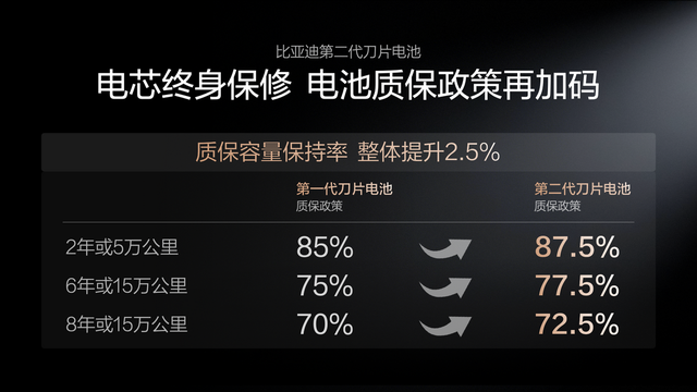 第一,闪充伤电池?比亚迪第二代刀片电池彻底打破这个魔咒!通过打造“锂离子高速通道”加上“全温域智能热管理”,充电又快散热又均匀,寿命不仅没影响,反而比第一代更长。敢把质保标准再提升2.5%,低于77.5%就免费换,电芯终身保修——没底气谁敢这么承诺?