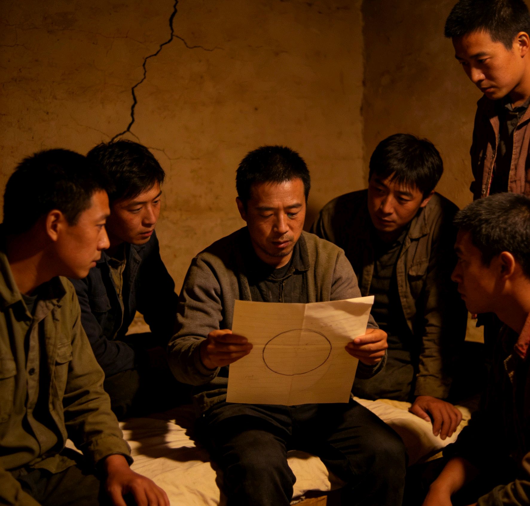 建军把贴身口袋里的信纸拿出来,展开给老张看,上面是我画的五个圆圈。