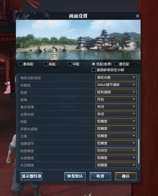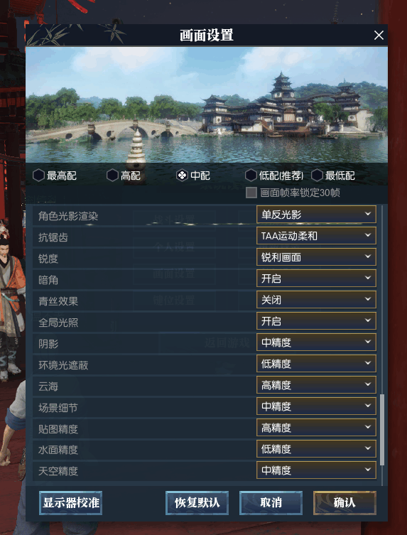 这会直接降到中配,分辨率依然为1920×1080,看下效果,《逆水寒》切换画面效果需要更改场景后才能生效,嗯、果断退出重新登录。