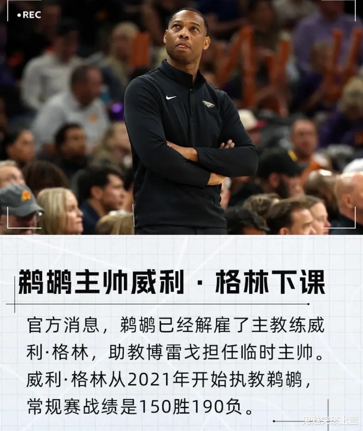就在刚刚,NBA2025-26赛季首位下课的球队主帅正式诞生了!据NBA名记Chris Haynes率先报道称,联盟消息人士透露,新奥尔良鹈鹕已经正式解雇了球队主教练威利格林,球队助教詹姆斯博雷戈将担任鹈鹕临时主教练。