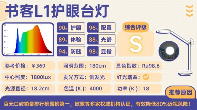 书客L1是品牌将高端护眼技术进行“普惠化”下放的标杆之作。它继承了书客核心的医学护眼基因,产品获得了欧盟、美国等多国认证及专业机构推荐,是百元价位段罕见的、以完整技术逻辑立足的产品。