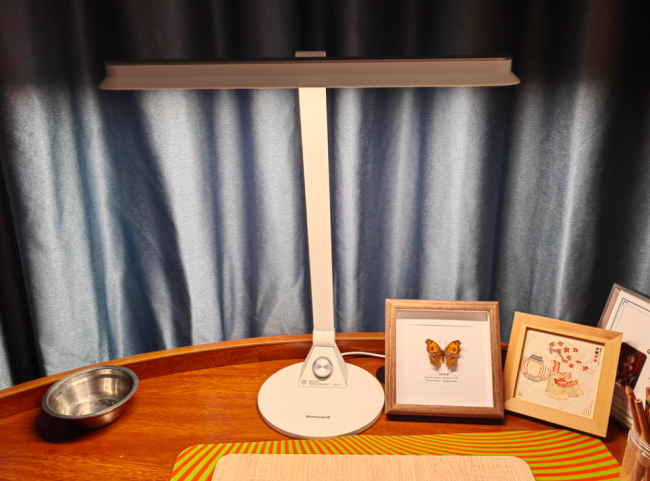 霍尼韦尔HWT-03A01这款台灯的核心优势在于其均衡的基础光学表现与扎实的做工。它采用约45cm的宽幅灯头,内部配备扩散透镜,有效柔化光线,减少直射眩光,照明范围可满足常规书桌需求。其光源拥有Ra98的高显色指数,能精准还原书本与物体的真实色彩。航空铝材打造的灯体结构稳固,配合多轴调节设计,可灵活适配不同坐姿。操作采用无极调光旋钮,并具备缓开缓灭功能,提升使用舒适度。不过,其功能配置相对基础,未集成智能感光、定时等进阶功能,更适合固定位置、追求稳定可靠照明的人群。