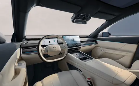 内饰部分,奕派eπ007+采用类似麂皮绒的材质包覆,搭配真皮加热方向盘以及皮质座椅,质感不错。此外还有WANOS2.0全景声音乐座舱、智能香氛系统及64色音乐律动氛围灯等配置,打造出不错的豪华感与舒适度。
