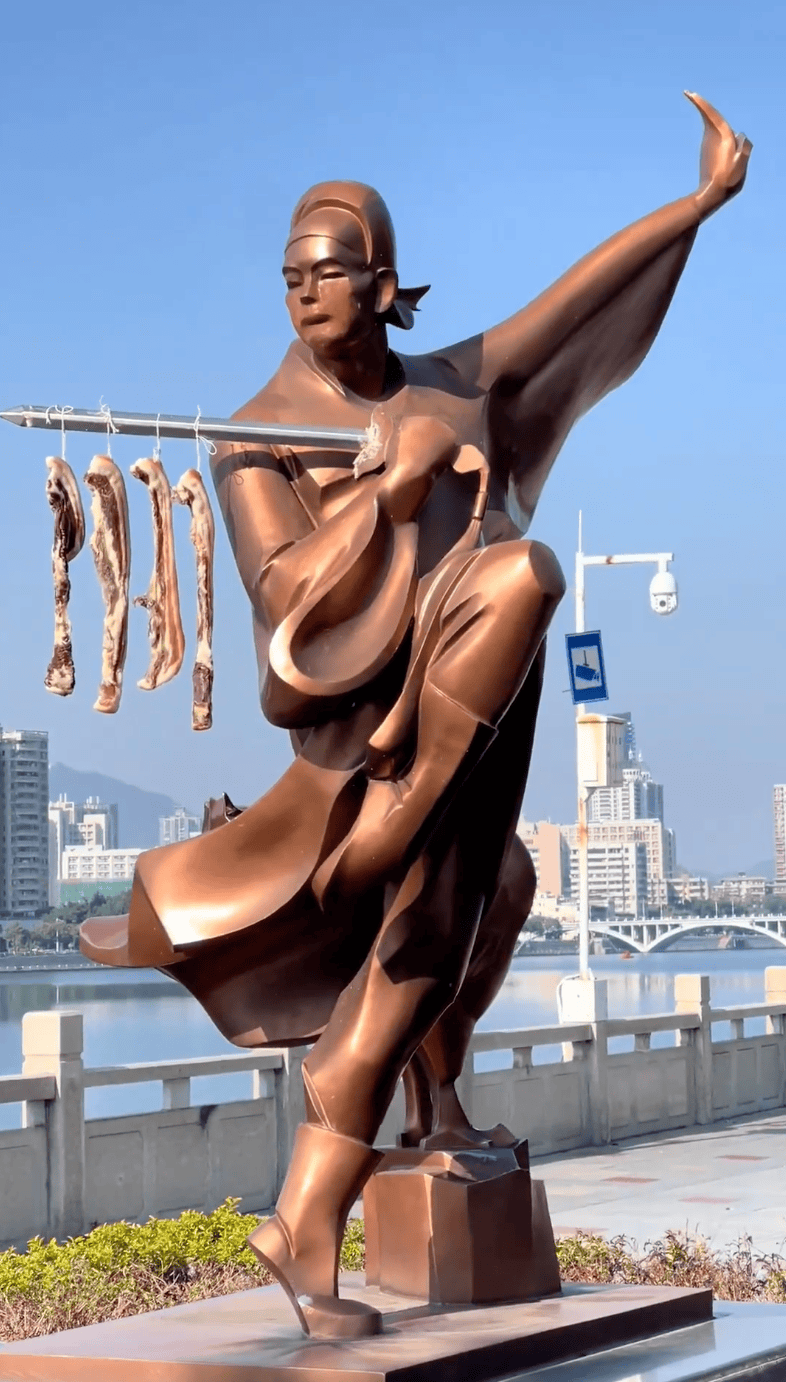 1.在雕塑上晒腊肉,还是在人家的剑上,这是给它上强度吗?哈哈还真是物尽其用啊!