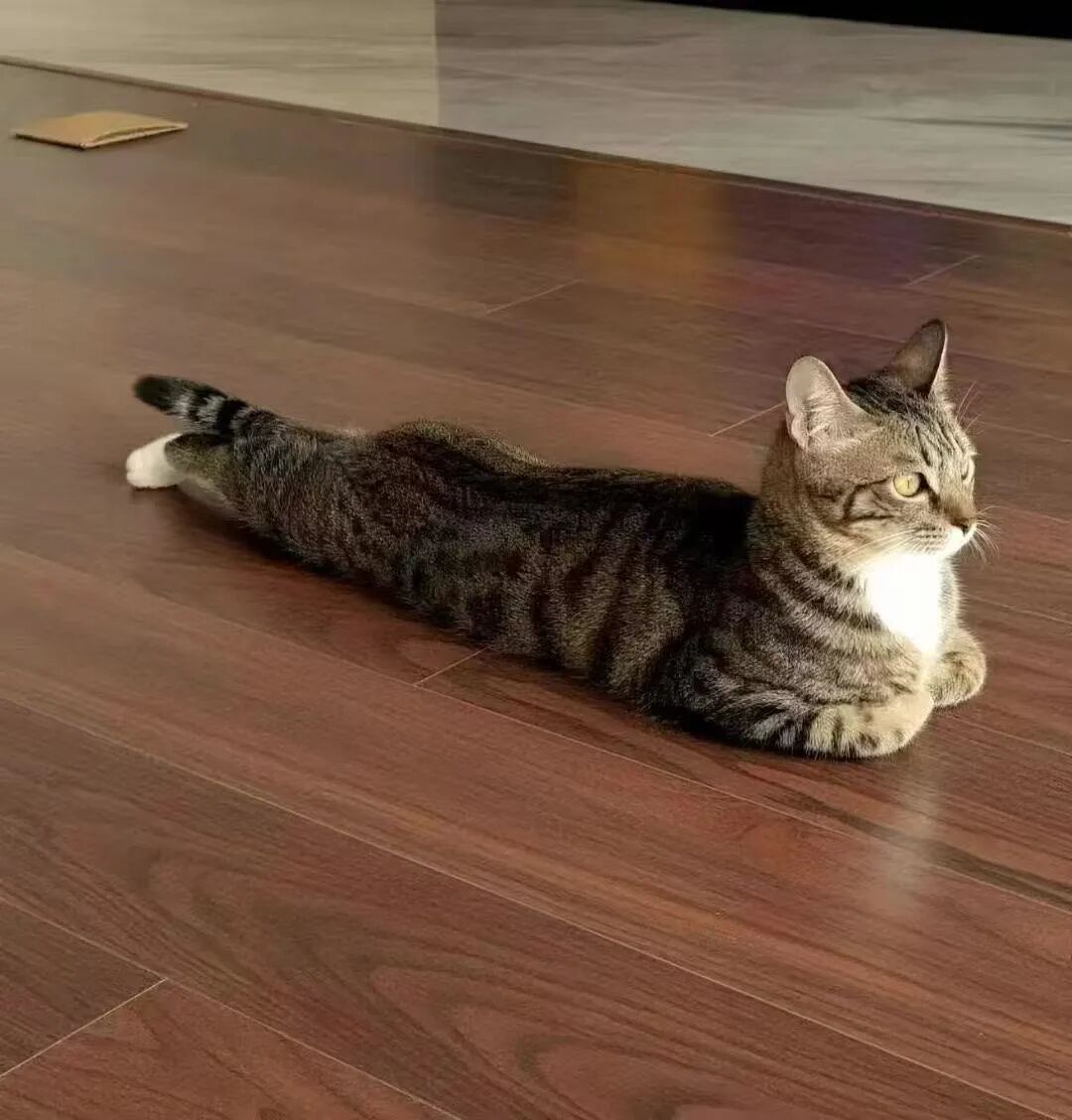 13.自律的猫咪正在练瑜伽呢。