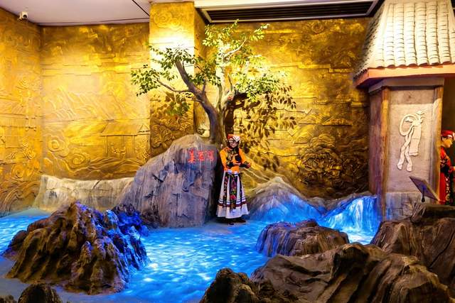播州宣慰府场景完美还原了宣慰府使的办公场景,木质府门、雕花屏风搭配两侧红鼓,威仪尽显。