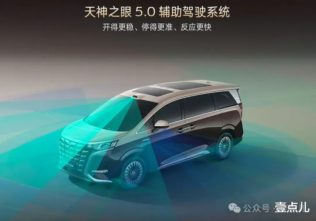 这次换代,全系标配比亚迪最新的天神之眼5.0驾驶辅助系统。功能上支持高速NOA、自动泊车等,但算力貌似不是很高?