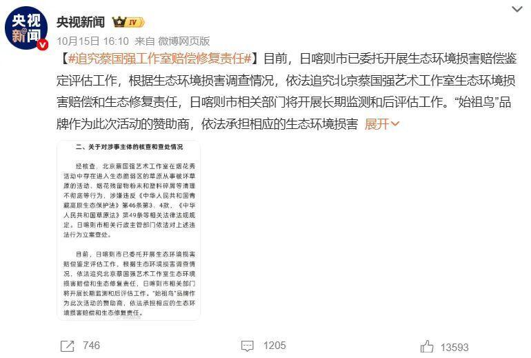 二是蔡国强。官方直接给蔡国强先生定了性:涉嫌违法!