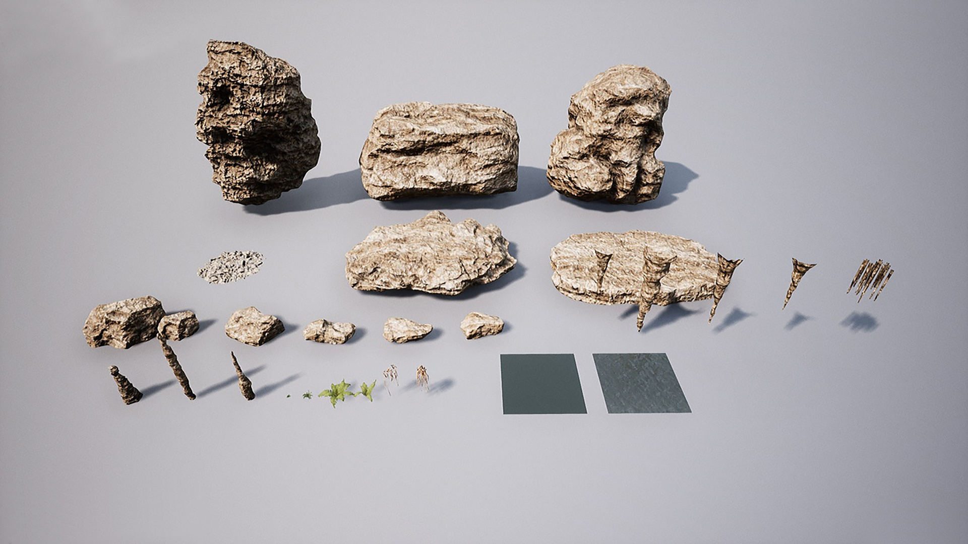 使用此资源包,您可以创建具有自然逼真外观的洞穴,或采用奇幻风格的洞穴。岩石完全模块化,您可以随意平移、缩放、旋转它们来构建整个洞穴。还包含一种景观材质,具有多个图层,能与网格完美融合。您可以使用顶点绘制功能,通过Alpha通道为岩石添加苔藓,或通过蓝色通道添加湿润效果。材质包含多个参数,可打造独一无二的洞穴外观。
